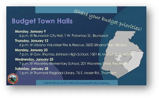 It’s an opportunity for Frederick County residents to help set priorities for fiscal year 2024.Frederick, Md (KM) Citizens are invited to attend a series of budget town halls taking place in Jan...